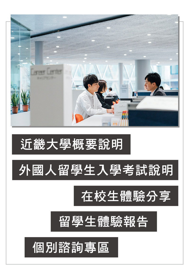 在日本以報考人數第一為榮耀的近畿大學。不僅是日本國內,2018年度外國人留學生入學考試中,更有來自世界各地超過500位以上的外國人留學生報考。 身為西日本最大規模綜合大學,我們歡迎抱有各種夢想的留學生加入。